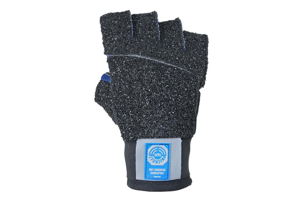 Skydehandske i sort/blå design fra AHG. Til linksskytter.