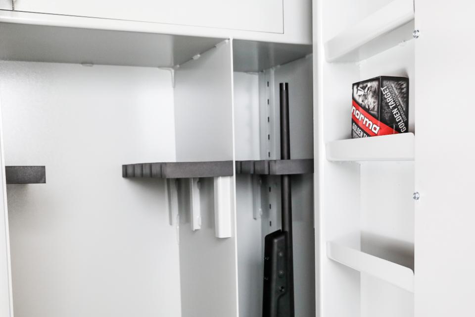 Skabet bliver leveret med 4 hylder, som sættes i højden, der passer skyttens behov.
